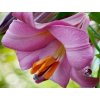 Ľalia 'Pink Perfection' - patrí k vysokým záhradným ľaliám, vyšľachteným pre pevné stonky a výraznú vôňu. Z jednej vyzretej cibule vyrastá v sezóne obvykle 150–180 cm vysoká stonka, ktorá v dobrých podmienkach nesie 4–10 pukov. Olistenie tvoria úzke, lesklo zelené listy v praslenách, ktorých textúra kontrastuje s jemne matnými kvetmi. Kvety mávajú 12–18 cm, sú ružovo lila s jemne svetlejším lemom a žltkastým hrdlom, otvorené do strán až mierne nahor. Rozkvitajú postupne v júli až auguste, takže okrasný efekt trvá niekoľko týždňov. Vôňa sa najviac uvoľňuje večer av teplom počasí, preto sa kultivar často uplatňuje pri terás, pergol av zadnej partii trvalkových záhonov. Vďaka pevným stvolom a dlhšej trvanlivosti vo váze je vhodný aj ako kvet na rez. V kompozícii dobre ladí s levanduľou, šantou, šalviou, okrasnými trávami a ružami s jednoduchými kvetmi, prípadne s nižšími denivkami, ktoré zakryjú pätu stonky. Rovnako ako iné ľalie je celá rastlina toxická pre mačky.