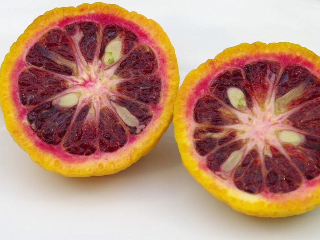 Mandarínka 'Trabut' - talianska stredne skorá odroda s výraznými plodmi. Stromček má vzpriamený a vzrastný habitus s hustou korunou a vajcovitými listami, jeho vzrast a veľkosť plodov pripomína austrálsku mandarínku Hansen. Plody sú strednej veľkosti, približne 6,5 cm, mierne sploštené s oranžovou stredne silnou kôrou, ktorá sa dobre lúpe. Dužina je tmavo červeno oranžová, jemná, rozdelená do desiatich segmentov s malým počtom semien, chuťovo je vyvážená a príjemná. Hoci meno môže naznačovať silnú pigmentáciu, skutočne nejde o klasickú krvavú odrodu. Odroda je samosprašná, preto plodí spoľahlivo aj ako jediná rastlina v nádobe. Je vhodná na pestovanie v skleníkoch, zimných záhradách alebo nádobách, kde jej kompaktný vzrast a atraktívne plody ocenia pestovatelia hľadajúci dekoratívnu mandarínku s kvalitnou chuťou.U starších rastlín sa často tvorí veľký počet drobných plodov, preto sa niekedy vypláca časť násady v lete odstrániť, aby zvyšné mandarínky lepšie dorástli a strom sa zbytočne nevyčerpal.