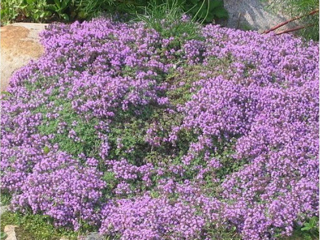 Materina dúška trpasličia - veľmi nízka, vytrvalá materina dúška z čeľade hluchavkovitých (Lamiaceae), pôvodom z južnej a strednej Európy, kde prirodzene osídľuje suché, kamenisté a slnečné stanovištia. V záhradnej praxi je cenená pre extrémne nízky, plazivý rast a schopnosť vytvárať súvislý, kompaktný koberec drobných, aromatických listov. Dorastá zvyčajne iba 2-5 cm do výšky, zatiaľ čo do šírky sa postupne rozrastá až na 50-70 cm. Listy má drobné, tmavo zelené, vždyzelené až polovždyzelené a pri dotyku uvoľňujú jemnú tymiánovú vôňu. V období od júna do júla sa nad listami objavujú drobné, husto nahlúčené kvety fialovo-ružovej farby, ktoré vytvárajú nízky farebný koberec. Kvety sú významným zdrojom nektáru a peľu a silne priťahujú včely a ďalšie opeľovače. Druh je vhodný predovšetkým ako pôdopokryvná trvalka do skaliek, suchých záhonov, medzi kamene, do štrkových výsadieb alebo na lemovanie ciest a nášľapných plôch, kde pôsobí prirodzene a nenarušuje kompozíciu.