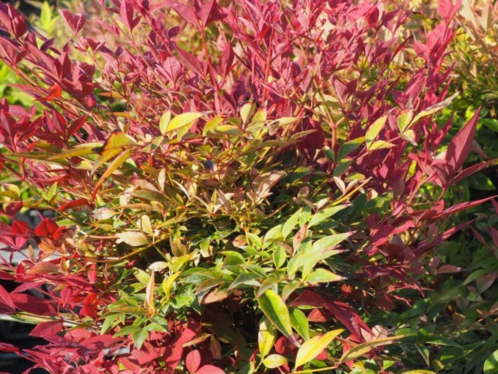 Nandina domáca 'Obsessed' - kompaktný ker pochádzajúci z Ázie, ktorý sa pestuje pre celoročný vizuálny prínos vďaka premenlivému sfarbeniu listov, kvetom a plodom. Jedná sa o kompaktný vždyzelený ker s hustým, vzpriameným a napriek tomu jemným hábitom dorastajúcim obvykle 0,6-1m na výšku a 0,5-1m na šírku, čo ho robí vhodným pre menšie záhrady, svahy, okraje záhonov aj pestovanie v nádobách. Nové výhony sa objavujú na jar, sú ohnivo červené až medené, postupne prechádzajú do zelenej a na jeseň av zime preberajú intenzívne červené až oranžové odtiene, čím poskytujú atraktívnu farebnosť počas celého roka. V letnom období, obvykle od júna do augusta, vytvára drobné biele kvety usporiadané do kónických lat, ktoré dopĺňajú celoročnú dekoratívnu hodnotu rastliny. Po odkvitnutí sa často objavujú lesklé červené bobule, ktoré zostávajú na vetvách do neskorej zimy a dopĺňajú sezónny farebný efekt. Plody aj listy obsahujú toxické látky a nie sú určené na konzumáciu. Nenáročná údržba a relatívna mrazuvzdornosť podporujú jej prijatie v slovenských záhradách.