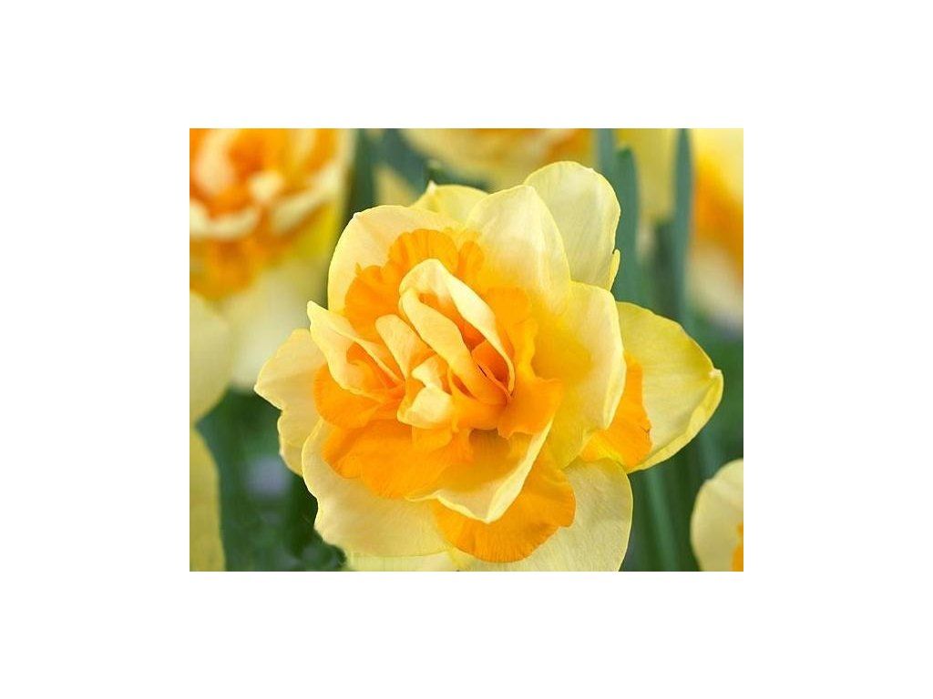 Narcis 'Double Beauty' - oslňujúci kultivar, zaujme určite každého záhradníka! Plné kvety majú žlto-marhuľovú farbu, stredový kalich je výraznejší, viac oranžový. Dosahuje do výšky 40cm a rovnako ako ostatné narcisy je vhodný na rez.
