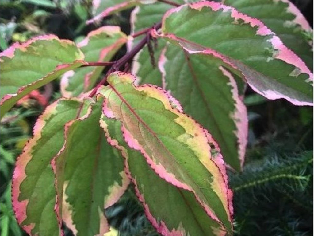Ocasatec čínsky 'Magpie' - krásny, nezvyčajný opadavý krík dorastajúci do výšky 2,4-3,6 m a približne rovnakej šírky. Má fialovočervené stonky zdobené dlhými, špicatými zelenými listami s krémovými okrajmi. Tie sú na čerstvo odrezaných výhonkoch bledoružové. Kvitne podobne ako ostatné rastliny tohto druhu - skoro na jar. Kvety tvoria dlhé strapce a sú krémovožltej farby. Rastlina je mimoriadne atraktívna pre medonosný hmyz.