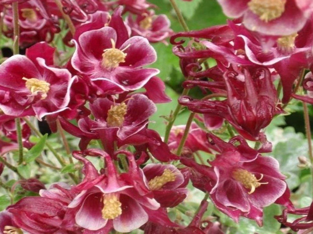 Orlíček obyčajný ´Winky Red and White Double´ - ďalší z radu vyšľachtených, nízkych, plnokvetých orlíčkov, tentoraz červenej farby s bielym stredom.