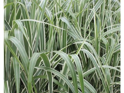 Miscanthus sinensis 'Variegatus' Kultivar ozdobnej trávy, ktorá sa vyznačuje atraktívnymi pruhovanými listami. Má listy s bielymi a zelenými pruhmi, čo je charakteristický znak...