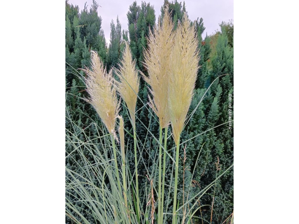 Pampová tráva 'Selloana' - obľúbená, trsnatá, mohutná tráva, dorastajúca do výšky 2 m. Jej chocholaté kvetenstvo je krémovo bielej farby a záhradu Vám bude zdobiť počas septembra a októbra. Vyžaduje veľký priestor. Vynikne ako soliterná rastlina alebo ako dominanta trvalkového záhona. Svoje miesto nájde aj pri jazierkach. Veľmi pekne vyzerá v záhradách vidieckeho štýlu. Vhodná na rez. Naozajstný skvost.