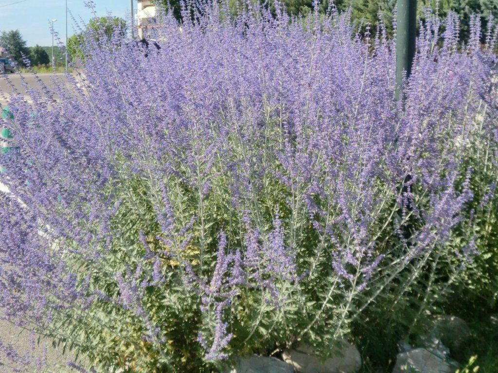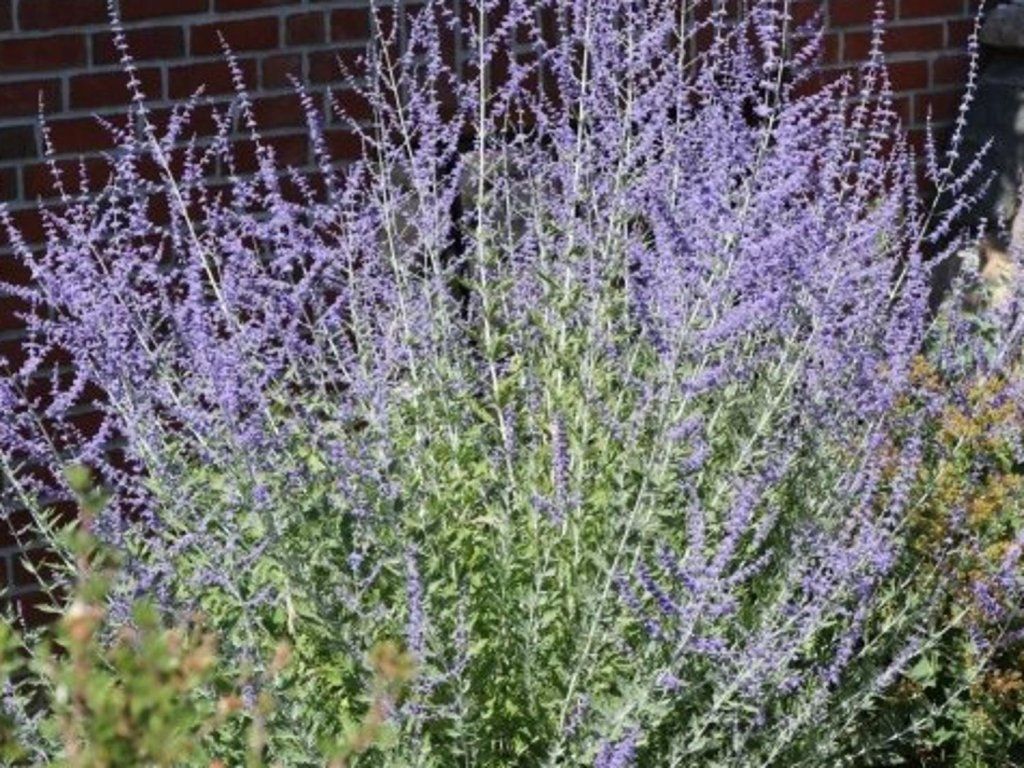 Perovskia lebedolistá 'Blue pire' - patrí medzi aromatické polokery s pôvodom v suchých stepných a horských oblastiach strednej Ázie, odkiaľ pochádzajú plané druhy perovskie. Vytvára hustý, odspodu drevnatý ker vysoký približne 80 až 120 cm a široký 60 až 100 cm, s množstvom vzpriamených až ľahko previsnutých výhonov. Listy sú úzke, hlboko členené, šedozelené až striebristo zelené, na dotyk jemné a po premnutí intenzívne vonia po živici a korení. Od júla do septembra, pri priaznivom počasí až do októbra, sa na koncoch mladých výhonov objavujú dlhé, riedke klasy drobných trubkovitých kvetov modrofialovej farby, ktoré okolo rastliny vytvárajú vzdušný, ľahko mihotavý oblak. Kvety poskytujú hojný nektár a peľ, a preto sú veľmi vyhľadávané včelami, čmeliakmi i motýľmi. Perovskie sa uplatní v trvalkových záhonoch, stepných a prérijných výsadbách, v kombinácii s ružami, levanduľami a okrasnými trávami, kde svojim striebristým olistením prepája farebne výrazných susedov a dodáva výsadbe ľahkosť. V predzáhradkách môže tvoriť voľné nízke lemy ciest, na slnečných svahoch pomáha spevňovať pôdu av moderných mestských záhradách prináša jemnú štruktúru aj tam, kde sú pôdy chudobnejšie a rýchlo vysychajú. Vhodne zvolená skupina niekoľkých rastlín dokáže počas leta vytvoriť výrazný farebný akcent, ktorý zostáva dekoratívny aj po odkvitnutí vďaka suchým kvetenstvom.