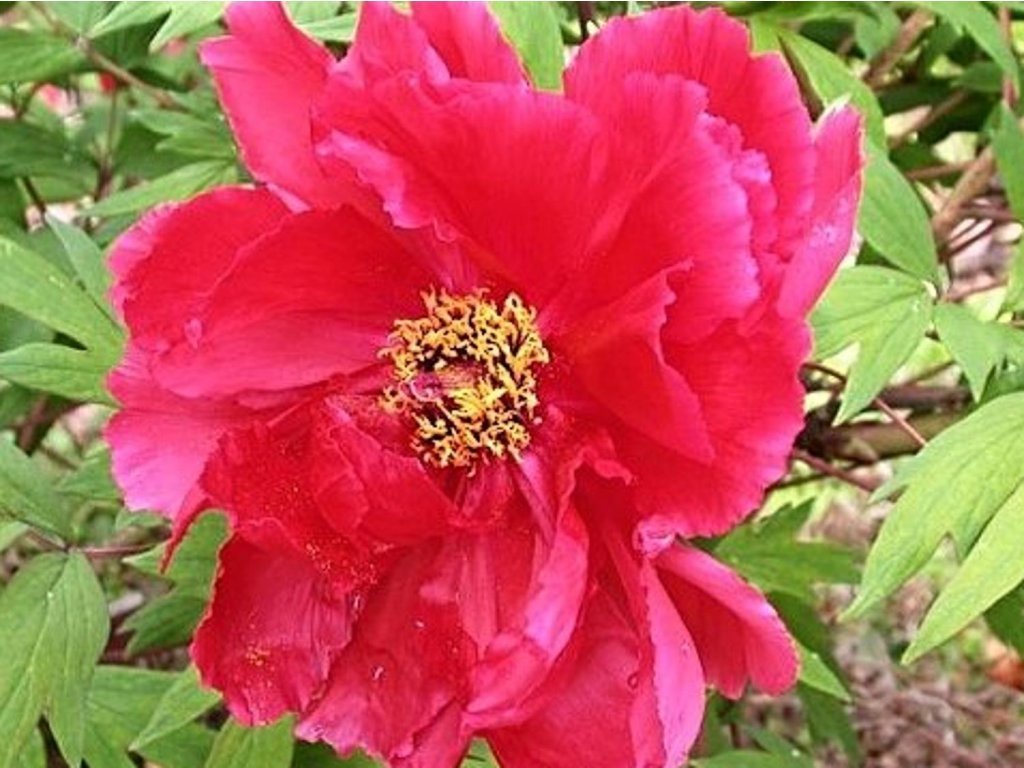 Pivonka drevitá 'Asahiminato' - krásny a pútavý kultivar, ktorý patrí medzi tradičné japonské kultivary uvádzané už na konci 19. storočia. Názov sa prekladá ako vychádzajúce slnko nad prístavom a dobre vystihuje farbu kvetov. Rastlina vytvára opadavý ker so stredne zelenými, trojpočetnými listami a postupne drevnatými výhonkami, takže pôsobí stabilne aj mimo doby kvitnutia. V máji až júni nesie jednoduché až poloplné kvety s priemerom zhruba 18–20 cm v purpurovo až šarlátovo červenom tóne. V strede sú zreteľné žlté tyčinky, ktoré priťahujú opeľovače. Kvety bývajú jemne vonné a uplatnia sa aj vo váze. V kompozícii vyniká ako solitéra, prípadne v zmiešanom záhone s neskorými tulipánmi, čemericami, okrasnými cesnakmi alebo s nízkymi drevinami, ktoré vytvoria závetrie a pokojné pozadie. Pivonka je celkovo krásnym prvkom do záhrad, prináša farbu a romantický vzhľad do každej záhrady. Rozhodne by nemala chýbať ani v tej Vašej.