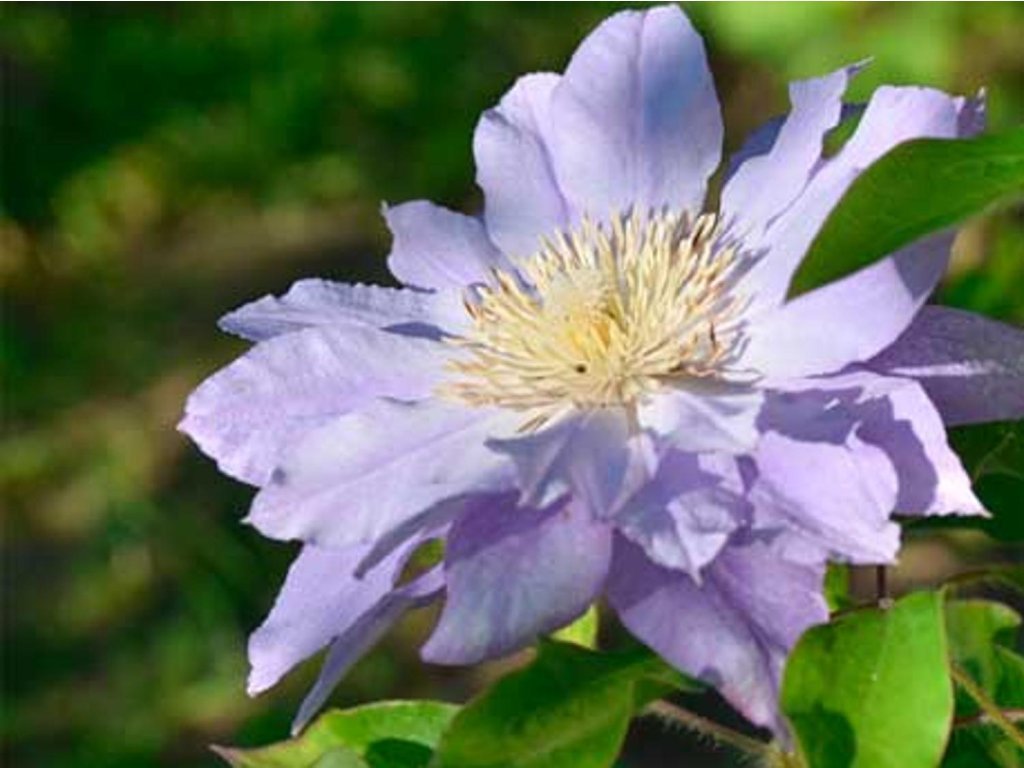 Plamienok 'Azure Ball' - moderný poľský kultivar z ranne veľkokvetej skupiny, cenený pre výrazné plné kvety a prehľadný rast. Vytvára popínavú lianu vysokú okolo 2 m, ktorá sa prichytáva úponkami k oporám a zostáva pomerne kompaktná, čo ocenia predovšetkým menšie záhrady a terasy. Listy sú sviežo zelené, jednoduché alebo trojdielne, srdcovitého až eliptického tvaru, na jeseň žltnú a opadávajú. Kvety sú veľké, 15–17 cm široké, plné až poloplné, zložené z mnohých úzkych, špicato zakončených okvetných lístkov. Sfarbenie sa pohybuje od svetlo modrofialovej po azúrovú, jednotlivé lístky často nesú jemné fialové tieňovanie smerom k špičkám. Stred kvetu tvoria žlté prašníky na svetlých nitkách, ktoré dodávajú kvetom iskru. Kvitnutie prebieha od polovice mája do konca júla, kvety sa objavujú ako na prezimovaných, tak na mladých výhonkoch. Po odkvitnutí sa tvorí páperie súplodia nažiek, ktoré rastlinu zdobia aj v neskorom lete. Vďaka svojmu sfarbeniu sa 'Azure Ball' uplatní u pergol, oporných múrov, plotov aj v nádobách, kde vytvára výrazný, ale opticky ľahký prvok, obzvlášť v kombinácii s ružami alebo bielymi hortenziami. Patrí do 2. skupiny plamienkov, určujúce ich rez.
