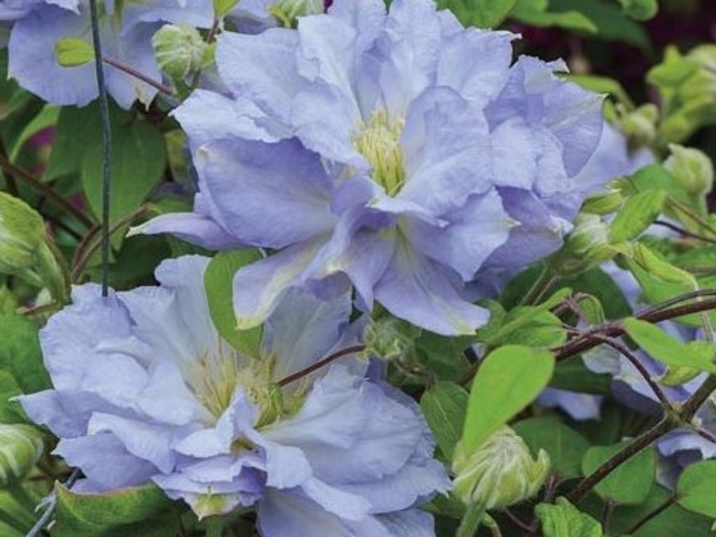 Plamienok 'Diamond Ball' - kompaktný veľkokvetý kultivar z modernej šľachtiteľskej rady Raymonda Evisona, zameranej na bohaté kvitnutie a menší vzrast, ktorý sa dobre uplatní aj v nádobách. Výhony obvykle dorastajú do 1,5–2 m, šírka rastliny sa pohybuje okolo 0,6–1 m. Listy sú ústretové, sýto zelené, v lete tvoria hustý plášť vhodný na popnutie menšej mriežky, treláže alebo balkónového zábradlia. Najväčšou ozdobou sú plné, viacradové kvety s priemerom približne 10–12 cm, ktoré tvarom pripomínajú okrúhle pompony. Plátky majú jemne modrý až modrofialový nádych s ľahkým zosvetlením k okrajom, stred kvetu je tvorený krátkymi, husto skladanými petaloidmi. Kvitnutie prebieha spravidla od júna do augusta, v priaznivých podmienkach pokračuje až do septembra, a to na výhonkoch minuloročných aj na novom dreve. Tento kultivar sa uplatní ako jemný akcent v predzáhradke, na terase alebo balkóne, kde dodá výsadbe ľahko romantický charakter bez nadmerných nárokov na priestor.Nie je náročný na pestovanie a je veľmi odolný, vďaka tomu je plamienok vhodnou rastlinou pre začiatočníkov aj pre skúsených záhradníkov.Patrí do 2. skupiny plamienkov, určujúce ich rez.