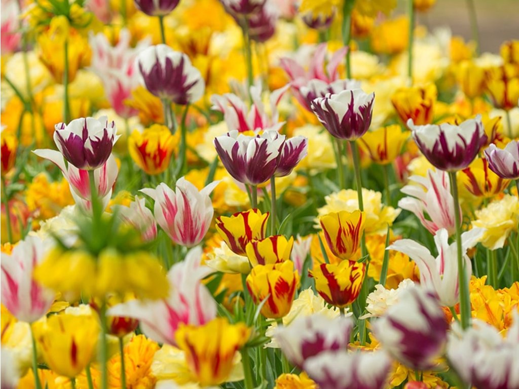 Rembrandtovy tulipány - mix - romantická zmes tulipánov inšpirovaná slávnym holandským maliarom Rembrandtom, ktorých plátky zdobia nepravidelné šmuhy, pruhy a žíhanie pripomínajúce ťahy štetca. Z jednej výsadby tak vyrastie pestrá kolekcia rôznofarebných kvetov na pevných stonkách vysokých približne 45–60cm. Kvitnú obvykle v druhej polovici jari, kedy spoľahlivo rozžiaria záhony aj rezané väzby. Vďaka svojej výške a robustným stonkám sa Rembrandt Mix hodí ako do formálnych záhonov, tak do prírodne ladených výsadieb, kde vytvára nápadný, umelecký efekt pripomínajúci maliarske plátno jarnej záhrady.