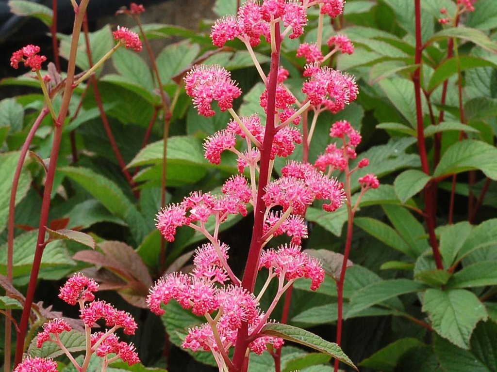 Rodgersia 'Bronze Paecock' - naozaj atraktívna trvalka, ktorá v dospelosti dorastá do výšky okolo 60 – 80 cm, pri rovnakej šírke. Má nielen zaujímavé kvety, ale aj listy. Tie vyrastajú v trsoch, sú delené, silné, lesklé a majú zeleno bronzový nádych. Kvety sú usporiadané do zhluku, príjemne vonia a majú ľahké ružové vyfarbenie. Rastlina vykvitá od júna do júla. Ideálne do trvalkových záhonov, nádob ale krásne vynikne aj ako solitéra. Nie je náročná na pestovanie a vo voľnej pôde je plne mrazuvzdorná. Pokiaľ hľadáte nenáročnú rastlinu, ktorá zaujme na prvý pohľad, potom je Rodgersie tou najlepšou voľbou.