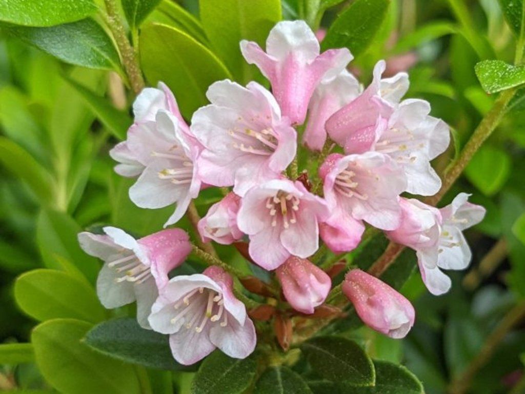 Rododendrón drobnokvetý 'Bloombux® Magenta' - vždyzelený kultivar rododendrónu vzniknutý krížením druhov Rhododendron hirsutum a Rhododendron micranthum. Bol vyšľachtený v Nemecku v rámci šľachtiteľského programu INKARHO zameraného na kompaktné a odolné rododendróny. Kultivar je známy aj pod označením klonu 'Microhirs9'. Rastlina vytvára husté, kompaktné kríky s guľovitým habitusom, ktoré v dospelosti dorastajú približne 60-90 cm výšky aj šírky. Listy má drobné, eliptické, lesklé a tmavozelené, svojím vzhľadom pripomínajú krušpán. Koncom mája a v júni sa na koncoch výhonkov objavujú početné drobné lievikovité kvety v jemnom bielo-ružovom odtieni, ktoré vytvárajú kompaktné súkvetia. Vďaka hustému vetveniu a dobrej znášanlivosti rezu sa tento kultivar často používa ako kvitnúca alternatíva krušpánu pre nízke živé ploty, tvarované obruby alebo výsadby v prednej časti záhonov. Vhodný je aj na pestovanie vo väčších nádobách na terasách a balkónoch, kde zostáva dekoratívny po celý rok vďaka vždyzeleným listom.