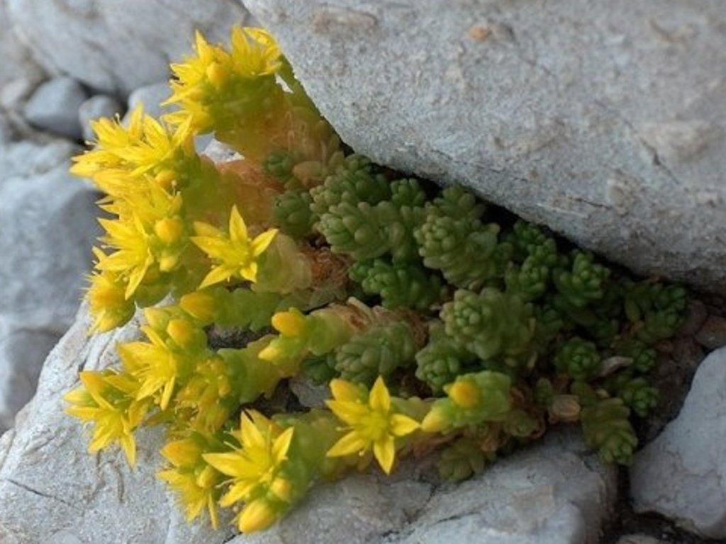 Sedum acre (rozchodník ostrý) – jeden z najrozšírenejších druhov po celej Európe, západnej Ázii, severnej Afrike, ale aj južnej a severnej Amerike. V Českej republike ho možno nájsť aj vo voľnej prírode. Trvalka, rastúca v hustých trsoch, iba 5-10 cm vysokých, medzi jej obľúbené stanovište patria skalnaté miesta, staré múriky, okraje ciest. Kvitne od mája do júna a je plne mrazuvzdorná.