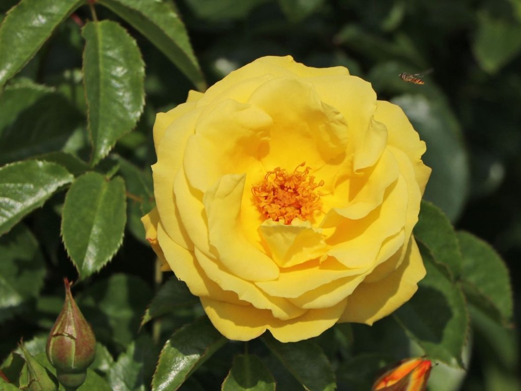 Pestovanie: Vyberte si vhodné miesto na slnečnom a vzdušnom mieste. Pôda by mala byť dobre odvodnená, humózna, piesočnatohlinitá. Namočte sadenice ruží s holými koreňmi na 12 až 24 hodín do vedra s vodou. Pred samotným namáčaním odrežte korene rastliny a skráťte korene odstrihnutím na 1 až 3 očká (ak sadíte na jar, nechajte samotné rezanie až na ďalšiu jar ). Medzitým urobte asi 60 cm hlbokú jamu, ktorú pomocou vidiel riadne zalejete dnom a bokmi jamy, a pridajte substrát vhodný pre ruže alebo dobre vyzretý kompost. Rastlina sa potom zasadí približne o 5 cm nižšie, ako je rástla u pestovateľa (sledujte jasne viditeľný "uzol", ktorý musí byť po zasadení v zemi).