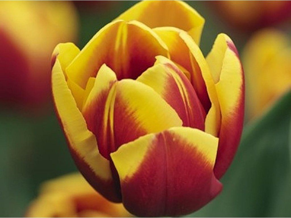 Tulipán 'André Citroen' - červené okvetné lístky sú pri okrajoch nepravidelne lemované žltou farbou. Výborne doplnia červené a žlté tulipány, vytvoria tak zaujímavé zoskupenie. Dorastá do výšky 40 cm. Kvitne v priebehu apríla a mája.