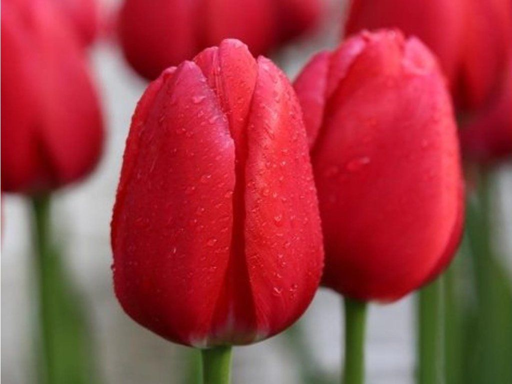 Tulipán 'Cherry Delight' - tento tulipán prináša jasne červené odtiene, s letmými zábleskami fialovej a ružovej. Perfektne bude vyzerať práve s čisto ružovými kultivármi. Dorastá do výšky 50 cm a kvitne už na začiatku jari.