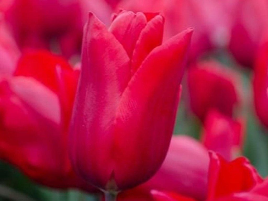 Tulipán 'First Star' - tulipán sfarbený do tlmeného červeného odtieňa. Dorastá do výšky okolo 40 - 50 cm, hodí sa teda na rez. Nakvitá v priebehu apríla. Farba nie je na prvý pohľad tak výrazná, ale ak ho vysadíte spolu s pastelovo sfarbenými tulipánmi, vynikne na prvý pohľad. Svetlo zelené listy krásu kvetu ešte viac podčiarkujú. Ideálny aj do nádob.
