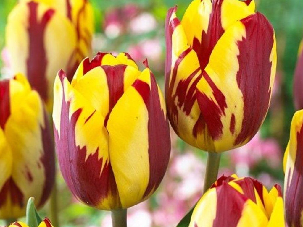 Tulipán 'Helmar' - NOVINKA v našej ponuke! Žlté okvetné plátky sú z väčšej časti pokryté rubínovo červenou farbou. Tento tulipán pôsobí veľmi energicky. Dorastá do výšky 60 cm a stane sa dominantou vo vašej záhrade.