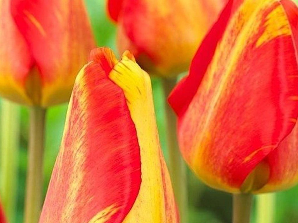 Tulipán 'Mystic Garant' - oranžovo žltý tulipán, farby sa krásne prelínajú. Pôsobí veľmi energicky. Dorastá do výšky 60 cm. Kvitne apríl - máj.