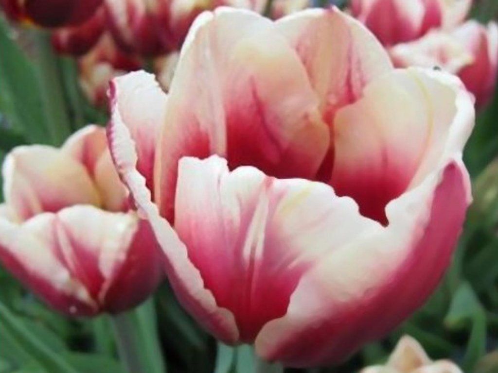 Tulipán 'Pole Position' - tmavo ružové lístky tulipánu postupne prechádzajú do krémovej až bielej farby. Zaujímavé sfarbenie sa hodí do každej okrasnej záhrady či skalky. Rastie do výšky 40 cm, kvitne od apríla do mája.
