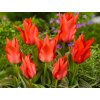 Tulipán 'Red Riding Hood' - výrazný a spoľahlivý kultivar, známy predovšetkým svojimi žiarivo červenými kvetmi s čiernym základom a nápadne škvrnitými alebo prúžkovanými listami. Kvety sú stredne veľké a počas slnečných dní sa výrazne roztvárajú doširoka, čím ešte viac vynikne ich sýta farba. Rastlina dorastá do výšky približne 20 až 30cm a kvitne veľmi skoro, obvykle už koncom marca alebo začiatkom apríla. Vďaka kompaktnému vzrastu a atraktívnemu olistenie je ideálny do skaliek, nízkych okrajových výsadieb aj nádob.