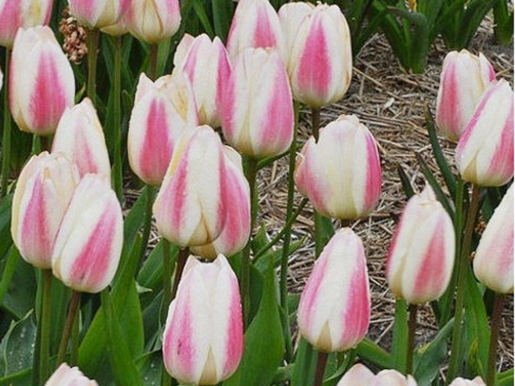 Tulipán 'Silk Surprise' – ak máte záhradu v pastelových odtieňoch alebo ste fanúšikom romanticky ladených záhrad, potom je tento tulipán jasnou voľbou. Základná farba okvetných lístkov je krémovo biela, každý okvetný lístok je zafarbený svetloružovou farbou. Tieto dve farby sa jemne prelínajú. Dorastá do výšky 40 cm a kvitne v priebehu apríla. Stonky sú silné, je teda ideálny na rez.