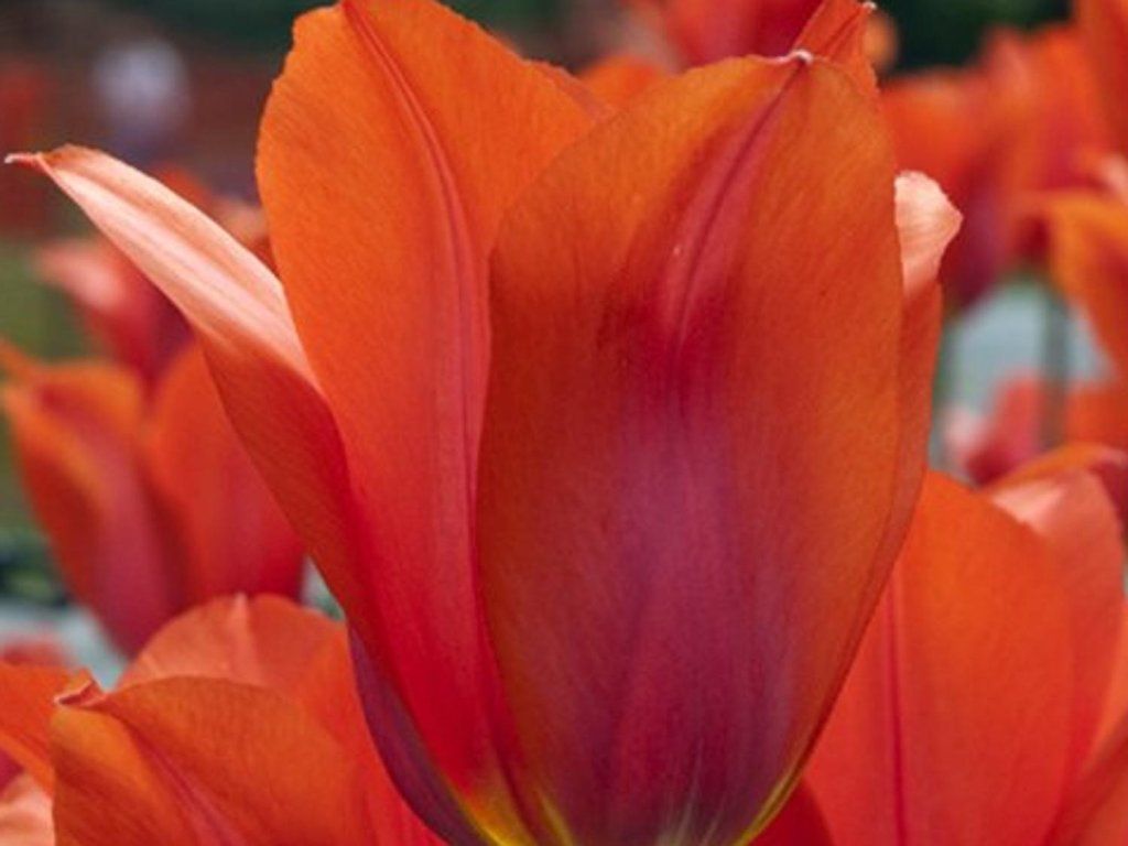 Tulipán 'Temple's Favourite' - NOVINKA v našej ponuke! Tulipán, ktorý má obrie kvety s prekvapivo príjemnou kombináciou pomarančovej a oranžovej farby s karmínovo ružovým plameňom a žltou základňou. Dorastá do výšky 40 cm.