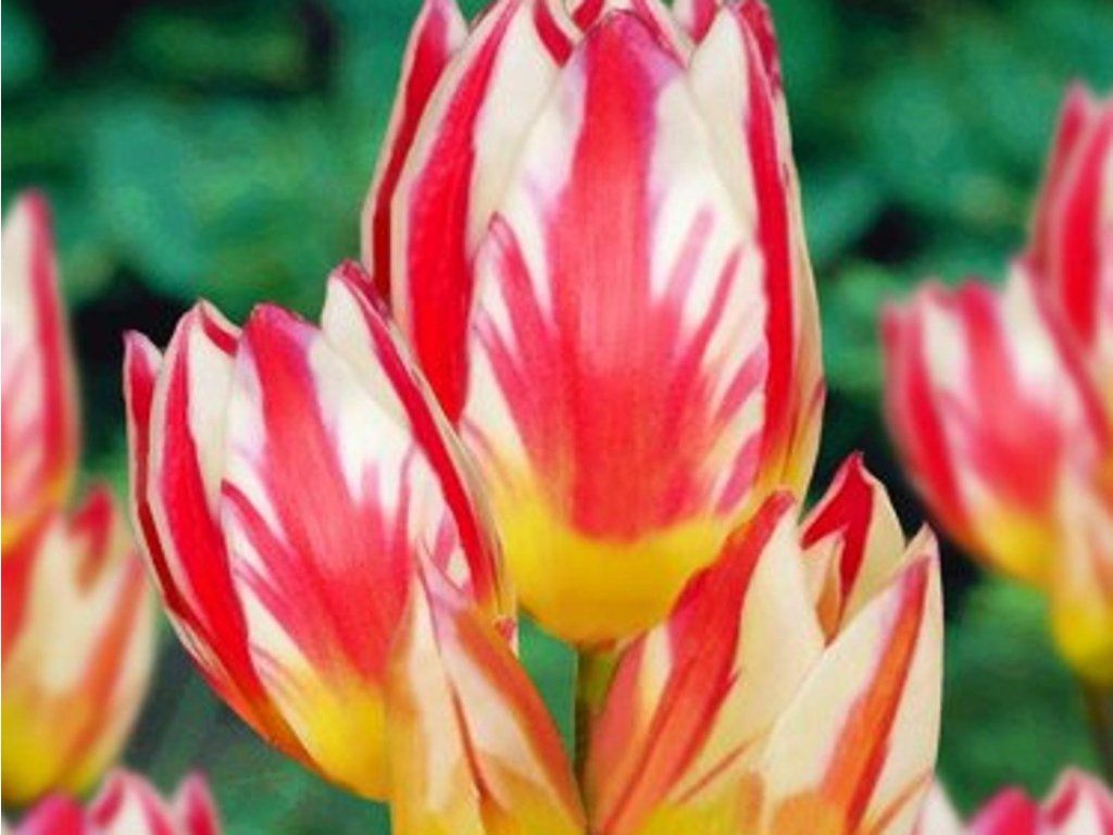 Tulipán 'Tricolette' - NOVINKA v našej ponuke! Ako už názov napovedá, jedná sa o trojfarebný tulipán. Biela farba sa prelína s červenou, dopĺňa ich žltá, ktorá je pri dne pohára. Dorastá do výšky 50 cm. Kvitne od marca.
