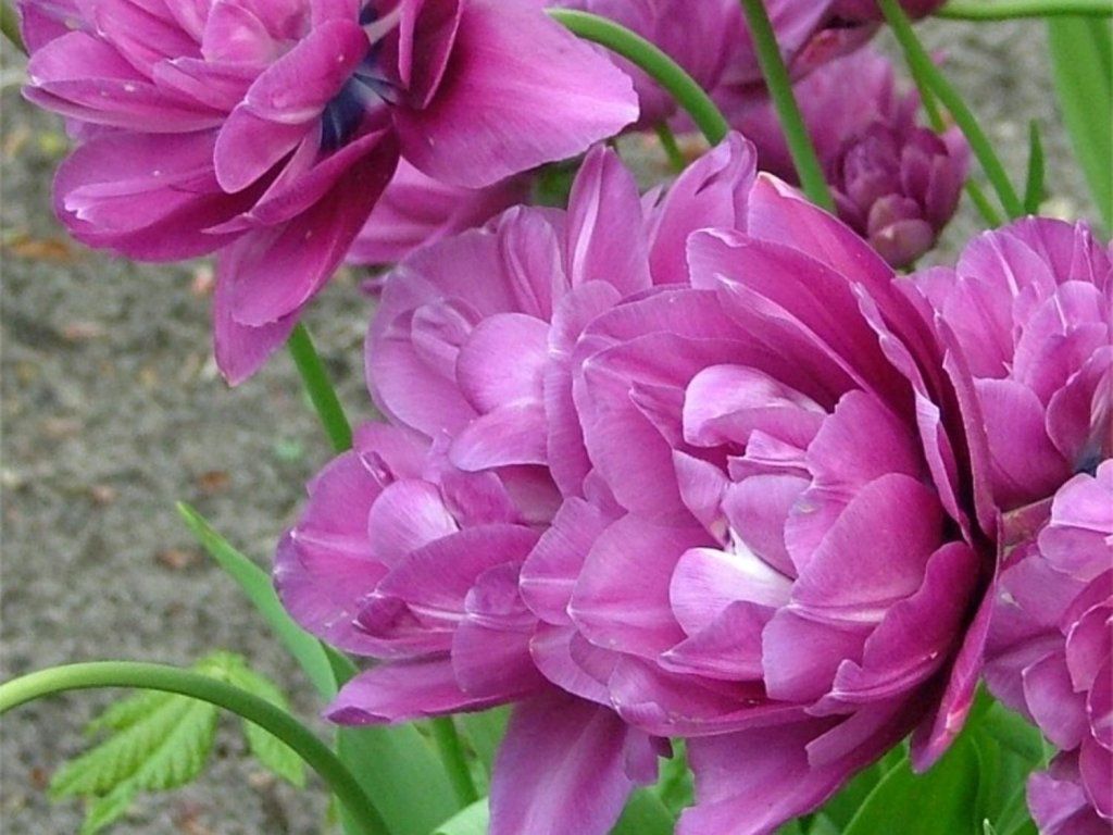 Tulipán 'Blue Spectacle' - ideálny kultivar pre milovníkov pivoniek. Jeho kvety sú totiž dvojité, plné a práve pivonky veľmi pripomínajú. Majú sýto purpurovú tmavú farbu. Vyzerajú najlepšie, keď sú plne otvorené.Vykvitajú v priebehu mája na až 60 cm vysokých stonkách. Stonky sa často ohýbajú a dodávajú rastlinám poliehavý efekt. Pekne vyzerá v kombinácii s konvalinkami či bleduľami.