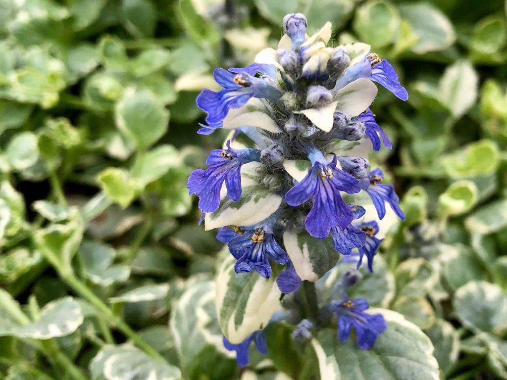 Zbehovec plazivý 'Variegata' - nádherná modrá farba zbehovca zaručene skrášli vašu záhradu. Tento kultivar vyniká nádhernými panašovanými listami. Dokonalá podrastová trvalka na oživenie tienistých kútov. Dorastá do výšky okolo 5-10 cm. Trvalka s pestrofarebnými listami a tmavo modrými, hluchavkovitými kvetmi na krátkych stonkách. Rozrastá sa podzemkami a koreniacimi výbežkami. Kvitne v období mája-júna. V dobrých podmienkach s dostatkom vlahy silne odnožuje a pokrýva väčšiu plochu. Na zatienených plochách môže slúžiť ako náhrada trávnika. Hodí sa do skaliek, korýt a kvetináčov. Vynikne v spoločnosti papradí, alchemilky a škornic.