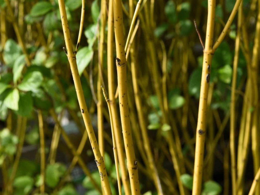 Zvída výbežkatá 'Flaviramea' - opadavý ker pochádzajúci zo Severnej Ameriky, kde sa prirodzene vyskytuje na vlhkých lúkach, v nivách riek a na okrajoch mokraďových lesov. Druh je cenený pre svoju vysokú prispôsobivosť, rýchly rast a výraznú zimnú dekoratívnosť. Kultivar 'Flaviramea' bol vyselektovaný pre nápadne žlté až žltozelené jednoročné výhony, ktoré sa v bezlistom období stávajú dominantným prvkom záhradnej kompozície. Ker dorastá približne 2-3 m výšky aj šírky a vytvára široko rozložitý, husto vetvený habitus s tendenciou k tvorbe výbežkov. Listy má vajcovité, stredne veľké, sviežo zelené, na jeseň sa vyfarbujú do žltých až oranžovočervených tónov. V máji až júni sa objavujú drobné krémovo biele kvety usporiadané v plochých vrcholíkoch s priemerom približne 4-6 cm, ktoré sú nenápadné, ale významné pre opeľovače. Na konci leta dozrievajú biele až slabo namodralé kôstkovice, ktoré slúžia ako potrava pre vtáctvo. 'Flaviramea' sa uplatňuje v prírodných záhradách, krajinárskych výsadbách, pozdĺž vodných plôch, v živých plotoch aj ako kontrastný prvok k tmavolistým alebo stálezeleným drevinám.